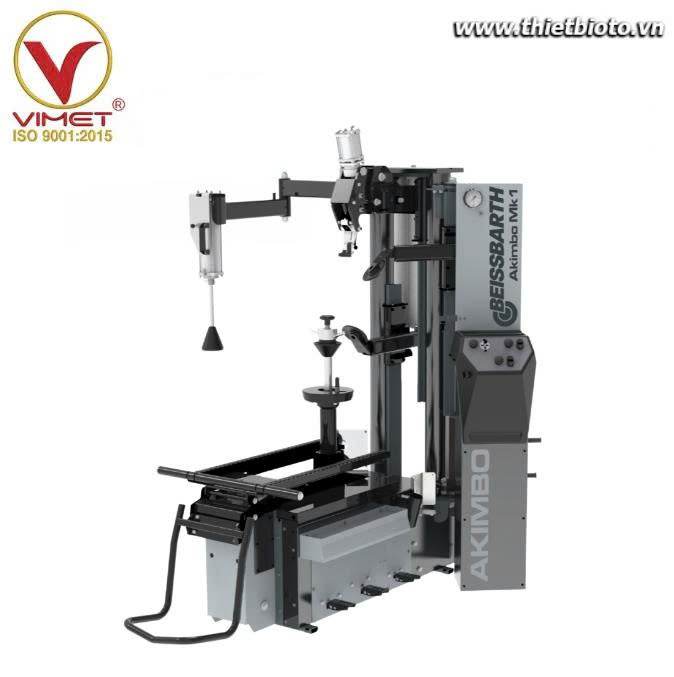 - Trụ móc lốp điều khiển bằng bàn đạp làm trụ nghiêng ra ngoài giúp thao tác nhanh và thuận tiện với lốp có bề rộng lớn.